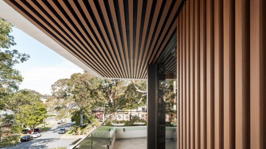Our wood look aluminum soffit system enhances your spaces from the top down. Designed to improve the visual appeal of entryways, overhangs, breezeways, balconies, and more, our aluminum soffit panels are setting a new aesthetic standard.